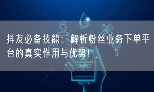 通过以上内容,相信读者对抖友必备技能——粉丝业务下单平台的真实作用与优势有了更深入的了解。希望读者能够充分利用这一工具,提升自己在抖音等社交平台上的表现。