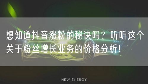 你是否想知道抖音涨粉的秘诀?在抖音这个社交媒体平台上,拥有众多粉丝意味着更大的影响力和商业潜力。本文将为你揭示抖音涨粉的秘诀,并对粉丝增长业务的价格进行深入分析,帮助你了解并优化你的抖音推广策略。