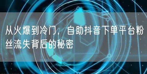 近年来,随着移动互联网的迅猛发展,社交平台的兴起成为一股不可阻挡的潮流。其中,抖音以其独特的短视频内容和强大的社交属性吸引了众多用户。与此同时,一些自助抖音下单平台也应运而生,旨在帮助用户快速增加抖音粉丝和曝光量。然而,这些平台从火爆到冷门,粉丝流失现象日益严重,背后究竟隐藏着怎样的秘密?本文将对此进行深入探讨。