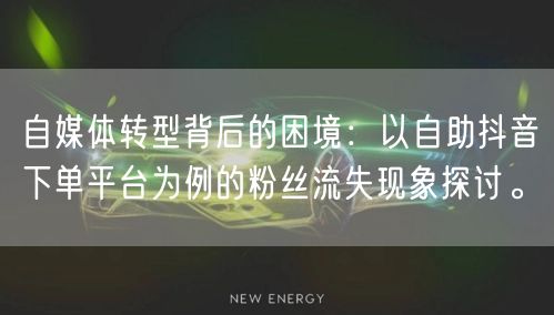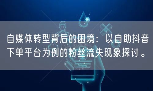 随着数字化时代的到来,自媒体作为一种新兴媒体形态,正在迅速发展。然而,随着市场竞争的加剧和用户需求的变化,自媒体面临着转型的困境。其中,以自助抖音下单平台为例,粉丝流失现象尤为突出。本文旨在探讨自媒体转型背后的困境,分析粉丝流失的原因,并提出相应的解决方案。