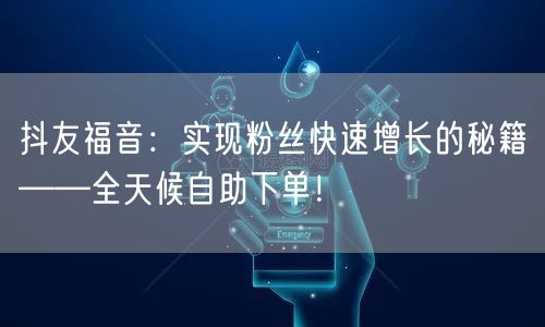 你是抖音平台上的热门用户吗?你是否渴望拥有更多的粉丝,扩大自己的影响力?今天,我们将为你揭示一个抖友福音:实现粉丝快速增长的秘籍——全天候自助下单!通过掌握这一秘籍,你将轻松获取大量粉丝,让你的抖音账号迅速腾飞!