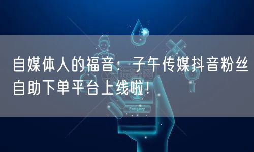 总之,子午传媒抖音粉丝自助下单平台的上线,为自媒体人带来极大的便利。从此,自媒体人可以更加专注于内容创作,而无需担心粉丝管理的繁琐事务。如果你是一名自媒体人,不妨试试这个平台,相信它会为你的内容创作带来全新的体验。