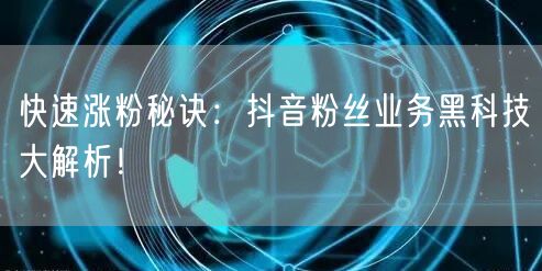 抖音粉丝业务是抖音平台上一种重要的业务形式,通过粉丝数量的增长,可以带动用户的影响力,进而实现商业价值的提升。随着市场竞争的加剧,越来越多的用户开始寻求快速涨粉的方法,其中黑科技手段成为了不少人的选择。