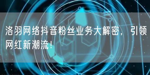 近年来,随着抖音平台的崛起,越来越多的网红开始在抖音上崭露头角。而在这一过程中,背后的网络业务也愈加受到关注。今天,我们将深入探讨洛羽网络的抖音粉丝业务,解密其背后的秘密,看看它是如何引领网红新潮流的。