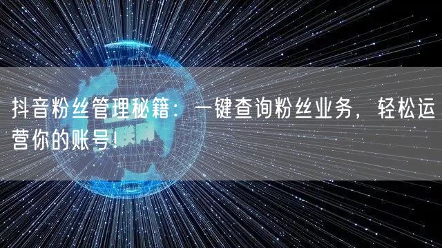 通过本文的介绍,希望能够帮助你更好地管理抖音粉丝,提升账号影响力。记住,有效的粉丝管理、一键查询粉丝业务、精准的运营策略以及数据分析能力,都是你成为抖音达人的关键!