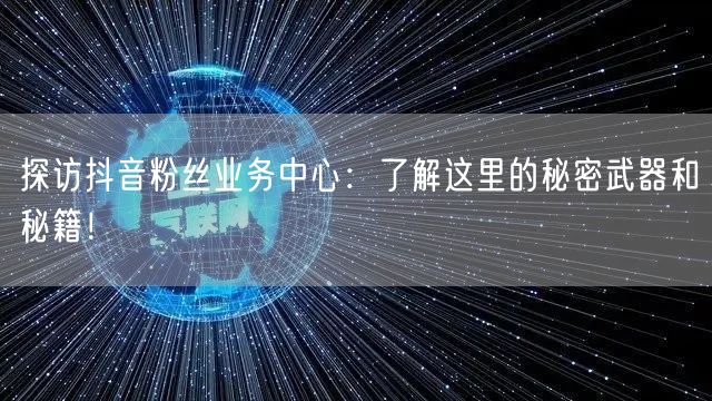 本文将带你探访抖音粉丝业务中心,揭示那些隐藏在其背后的秘密武器和秘籍。我们深入了解这一神秘领域,为你揭开成功的秘诀!随着抖音平台的迅速崛起,粉丝业务中心已成为许多用户和网红关注的焦点。那么,这个业务中心究竟有何独特之处?让我们一同揭晓其中的奥秘!