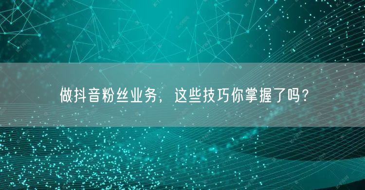掌握抖音粉丝业务的关键技巧,是成为抖音达人的关键。通过本文介绍的抖音运营技巧、粉丝增长策略、社交媒体营销和抖音推广方法,相信你在抖音平台上能够取得更好的成绩。不断学习和实践,不断提升自己的运营能力,成为真正的抖音达人!