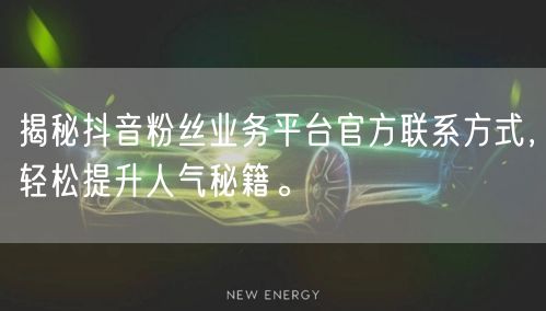 随着抖音的普及,越来越多的人开始在抖音上展示自己的才华和创意。然而,在这个竞争激烈的平台上,如何快速增加粉丝和提升人气成为了许多用户关注的焦点。有人传言,通过抖音粉丝业务平台可以迅速增加粉丝,但这是否真实呢?今天,我们将揭秘抖音粉丝业务平台的官方联系方式,带你掌握轻松提升人气的秘籍。