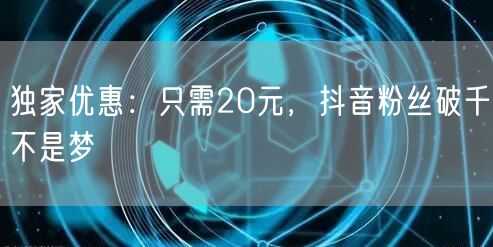赶快参与我们的独家优惠活动吧!只需20元,抖音粉丝破千不是梦!让我们一起在抖音平台上创造更多的可能!