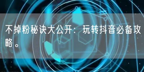 总之,要想在抖音上不掉粉,需要掌握一定的技巧和策略。通过以上的秘诀和攻略,相信你一定能在抖音平台上轻松吸引粉丝,提升影响力,成为社交媒体达人!