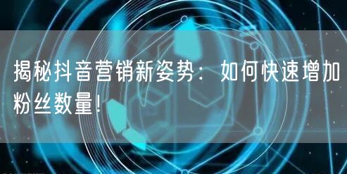 总结:本文为你详细介绍了抖音营销新姿势,包括短视频引流、优化信息展示、精准定位目标受众和合理制定推广计划等方面的内容。通过掌握这些技巧和方法,你可以在抖音平台上轻松实现快速增加粉丝数量的目标,获取更多关注和粉丝,实现商业价值最大化。希望本文能为你带来启发和帮助!