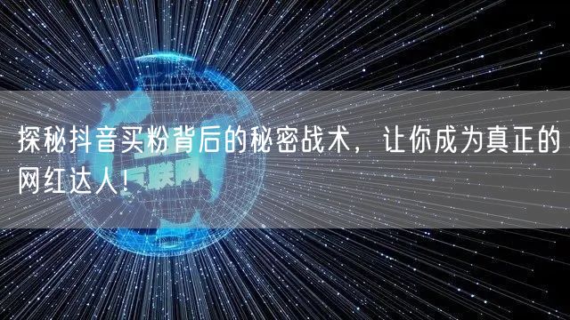 总之,想要成为抖音上的网红达人,需要掌握买粉背后的秘密战术,但更重要的是持续输出优质内容,与粉丝保持良好的互动沟通。只有这样,才能在抖音上真正立足,成为网红达人!