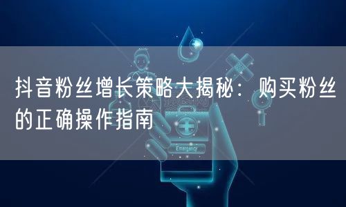 随着抖音的普及,越来越多的个人和企业希望通过抖音平台提升知名度。而粉丝数量是衡量抖音影响力的重要指标之一。本文将为你揭示抖音粉丝增长策略,特别是购买粉丝的正确操作方式。