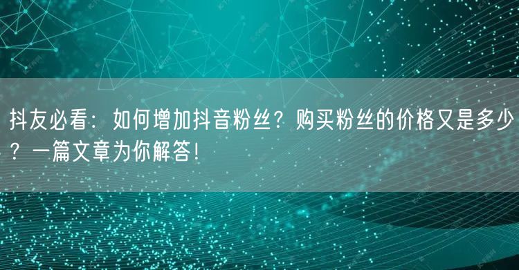 抖音已成为当下最热门的社交媒体平台之一,吸引众多用户争相分享。对于抖友而言,粉丝数量是影响力的象征。本文将为你揭示如何有效增加抖音粉丝,以及购买粉丝的价格和注意事项。