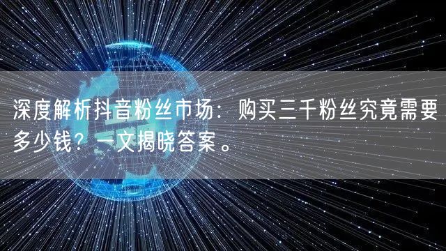 随着抖音平台的迅速崛起,越来越多的个人和企业通过抖音进行品牌宣传、产品推广。在这样的背景下,抖音粉丝的数量成为衡量一个账号影响力的重要指标之一。于是,购买抖音粉丝成为了不少人快速提升影响力的选择。那么,购买三千粉丝究竟需要多少钱?本文将深度解析抖音粉丝市场,为您揭示答案。