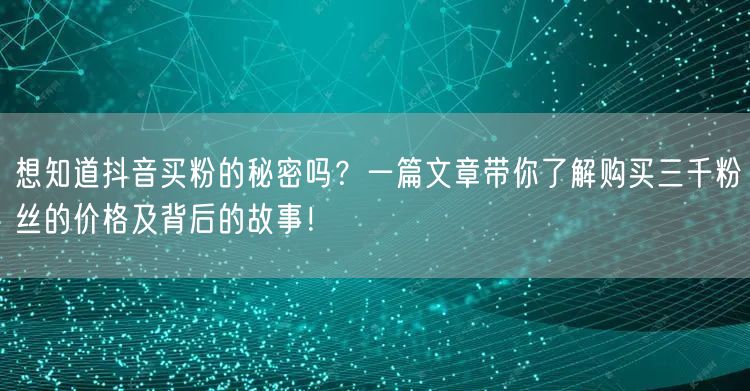 在抖音这个充满竞争的平台,拥有众多的粉丝意味着更高的曝光率、更多的机会和更大的影响力。因此,许多用户开始考虑购买粉丝,以迅速扩大自己的影响力。本文将带你深入了解抖音买粉的秘密,探究购买三千粉丝的价格及背后的故事。